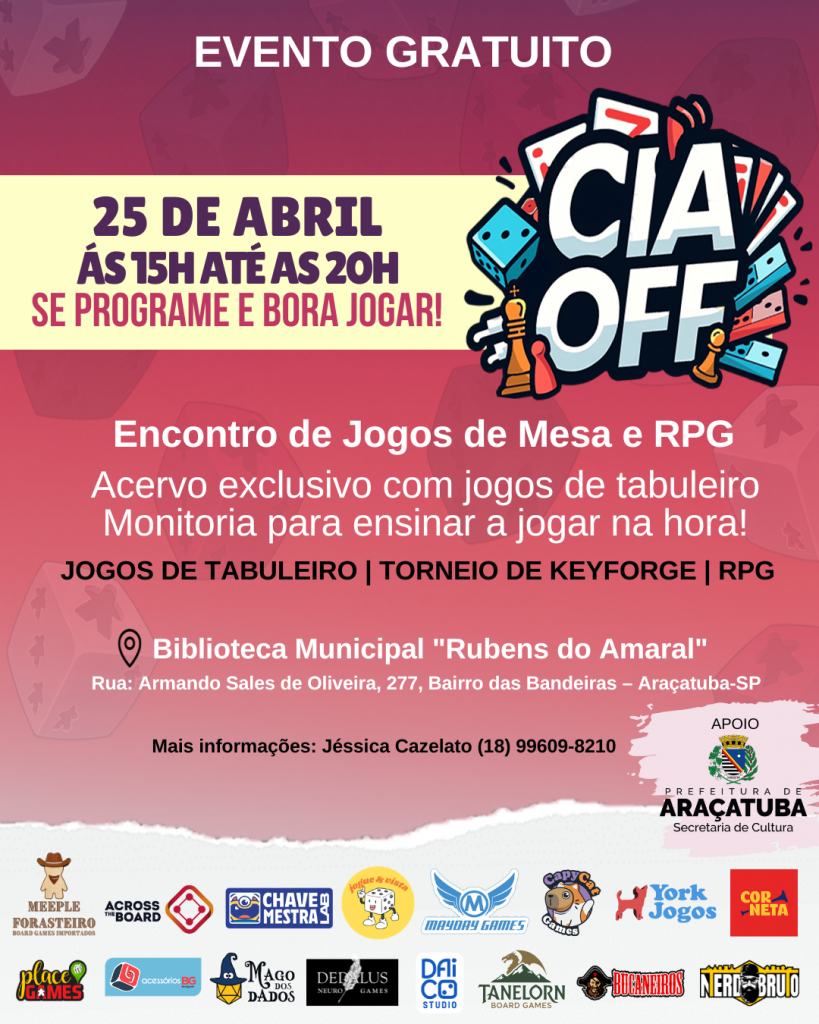 #CIAOFF #JogosDeTabuleiro #KeyForge #RPG #EventoGratuito #Araçatuba #BoraJogar