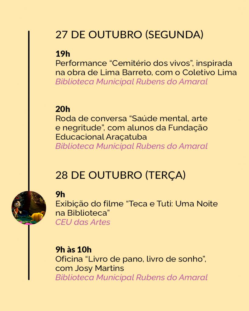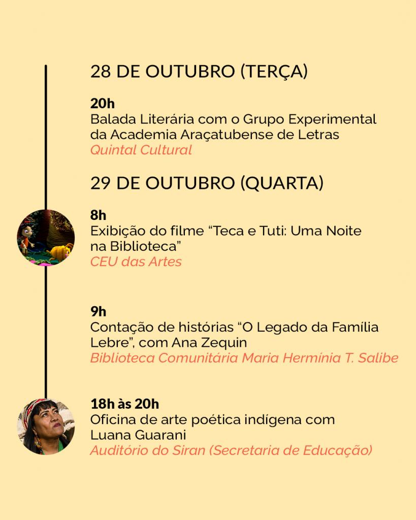 O evento este ano é realizado pela Secretaria Municipal de Cultura, Secretaria Municipal de Educação e Narrativas, tendo como apoio o Sesc Birigui e o apoio institucional da Academia Araçatubense de Letras e a Fundação Educacional Araçatuba. A programação COMPLETA estará disponível no site da Cultura.
