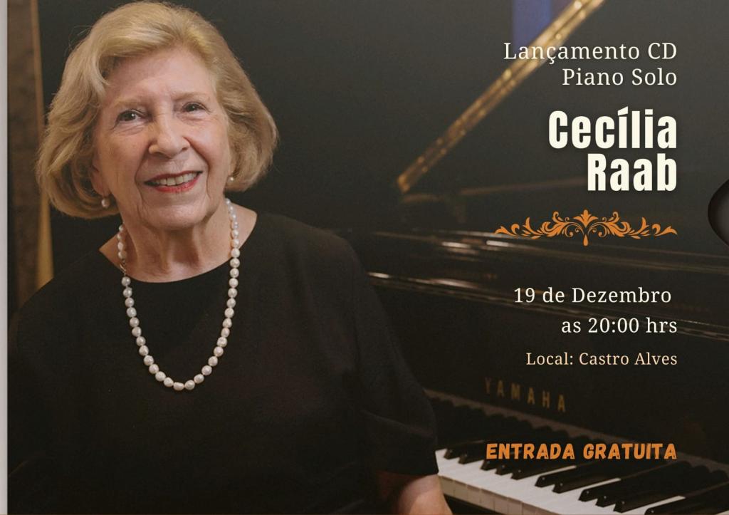 Lançamento do CD “Piano Solo”, da pianista araçatubense Cecília Raab, reconhecida por sua forte atuação na formação de músicos e na valorização da cultura musical da cidade.