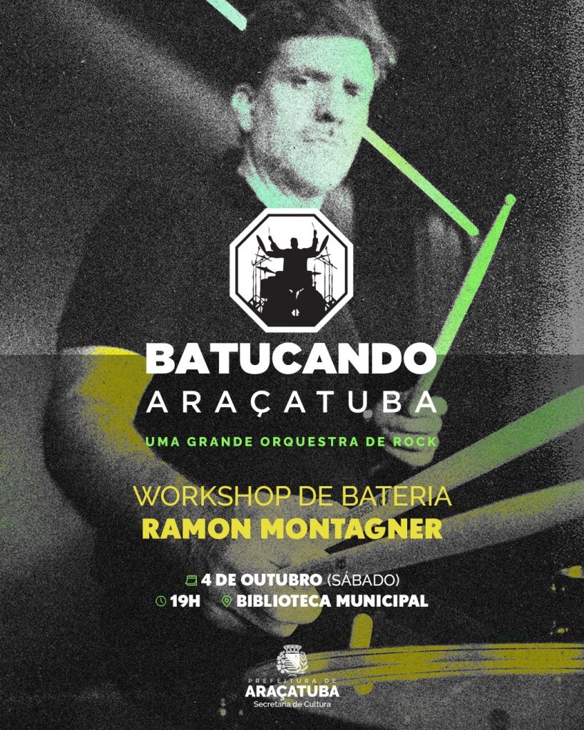 No sábado (4), músicos, estudantes e apreciadores da música poderão participar do workshop gratuito de bateria com o renomado músico Ramon Montagner. A atividade será realizada a partir das 19h, na Biblioteca Municipal Rubens do Amaral.