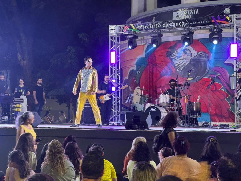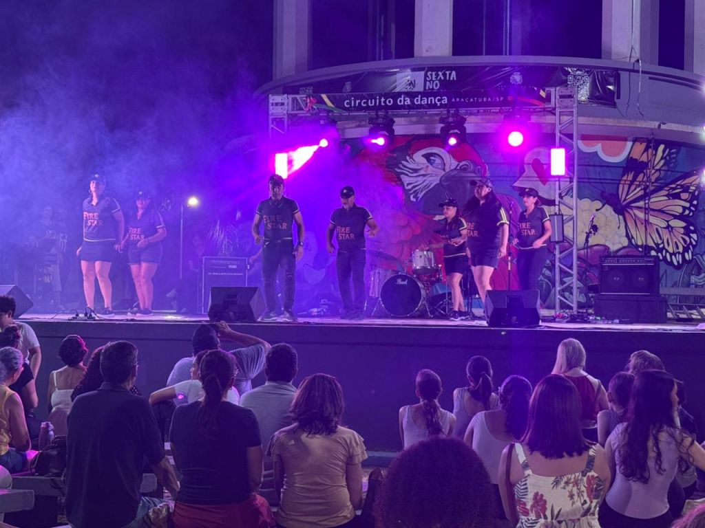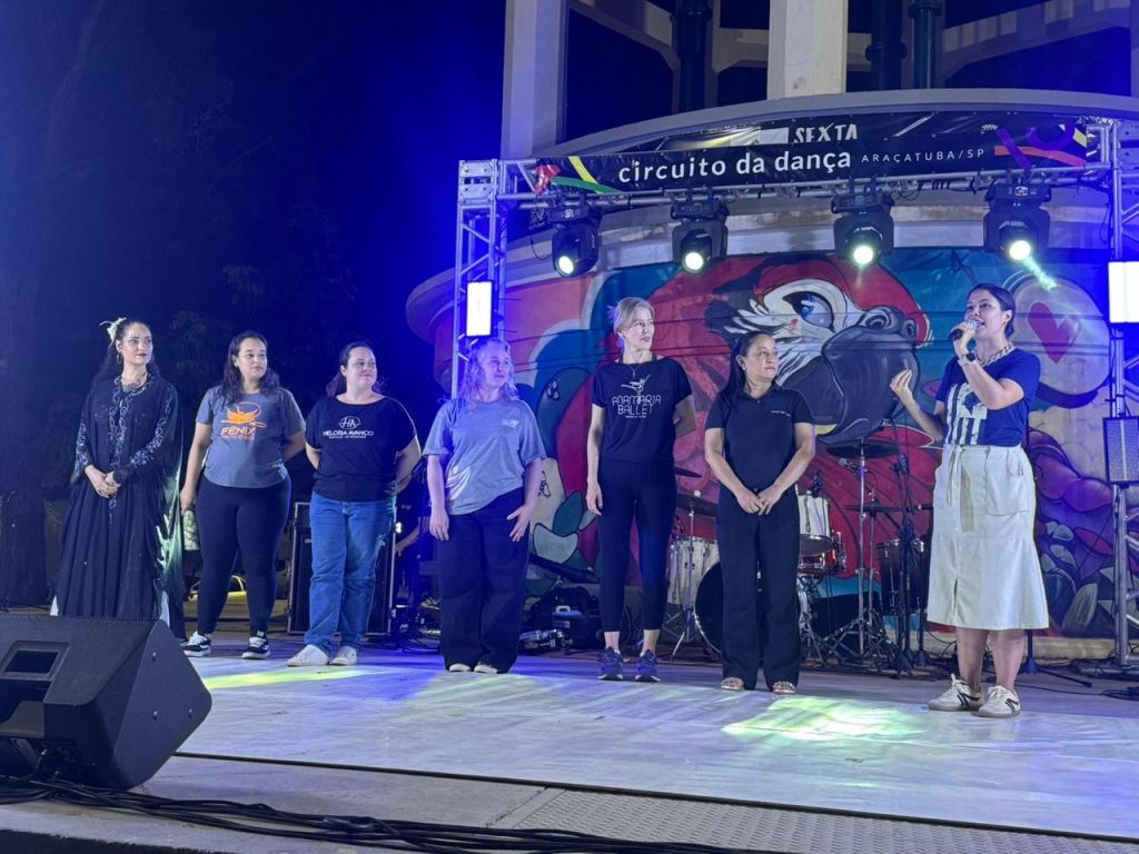 Um flashmob protagonizado por alunos de escolas de dança pública e privada de Araçatuba marcou a abertura do Circuito da Dança 2026. A apresentação surpresa, realizada durante o projeto Sexta no Tom, encantou o público que lotou a Praça João Pessoa, na noite dessa sexta-feira (24).