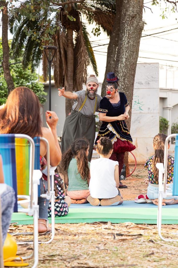 A programação também incluiu a oficina “Estado – Palhaço”, que convidou os participantes a explorar o próprio ridículo e interagir de forma lúdica com objetos e o público, estimulando criatividade, participação e integração entre as famílias presentes.