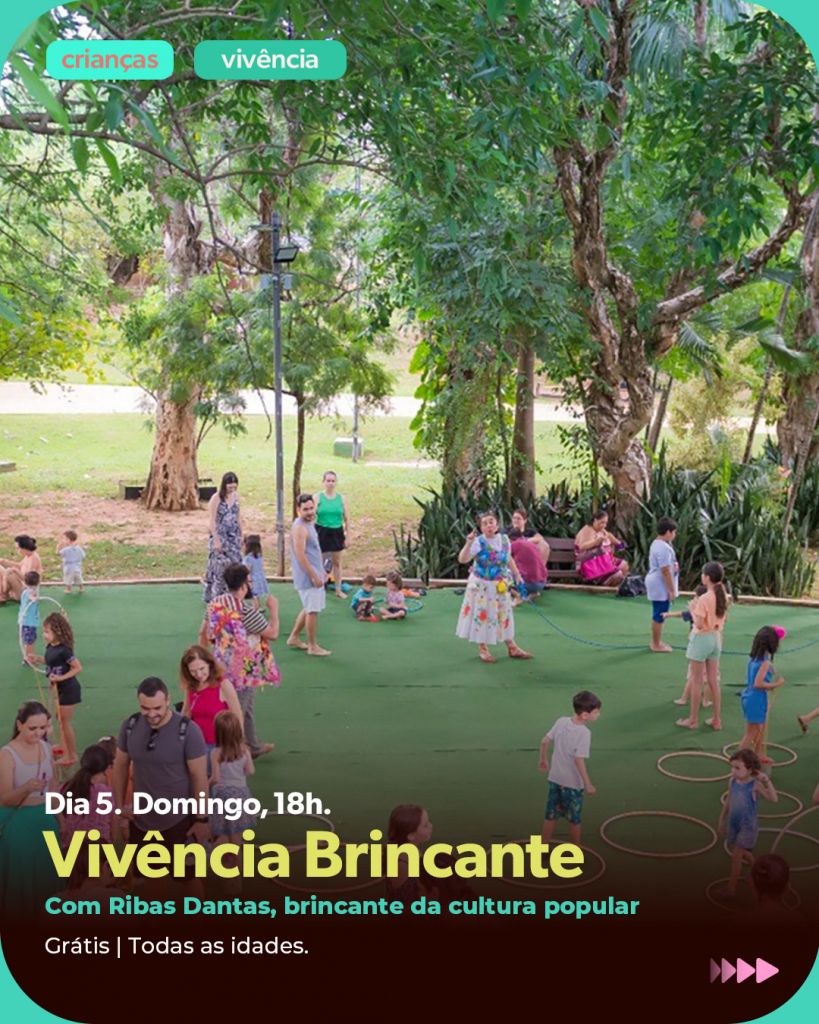 O Sesc levará também à praça dois projetos de vivências: “Elos em Movimento”, que unirá conexão e movimento, fortalecendo a cultura das infâncias, e o “Brincante”, que conduzirá crianças e adultos a experimentarem brincadeiras de roda, resgatando a tradição do brincar coletivo.