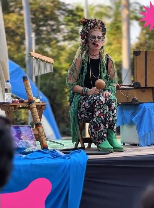 A arte-educadora Katuapó Conta Histórias vai envolver as crianças e adultos em uma narrativa lúdica, explorando o elemento água. A proposta é estabelecer um contato fabuloso com o tema, por meio de instrumentos sonoros e da própria narrativa, estimulando a imaginação dos presentes.