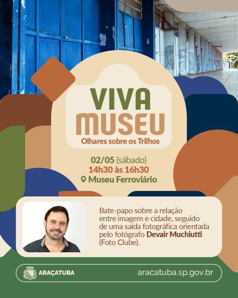 A segunda edição do projeto Viva Museu, da Secretaria Municipal de Cultura de Araçatuba, abordará o tema “Olhares sobre os Trilhos”. O evento será realizado das 14h30 às 16h30, no Museu Ferroviário Moisés Joaquim Rodrigues, com entrada gratuita.