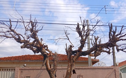 Compensação Ambiental:Após vistoria no local, foi constatado que a árvore possui altura maior do que o recomendado para o local, necessitando de podas drásticas para adequação.