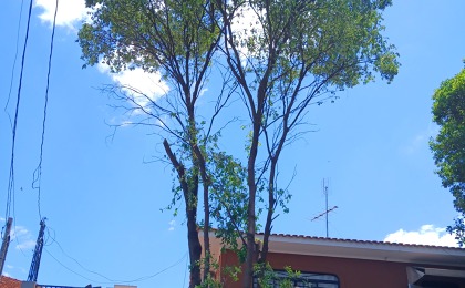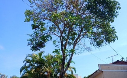 Compensação Ambiental:Após vistoria no local, foi constatado que a árvore está com suas raízes danificando a guia da sarjeta, a tubulação de água pluvial e o muro do imóvel.