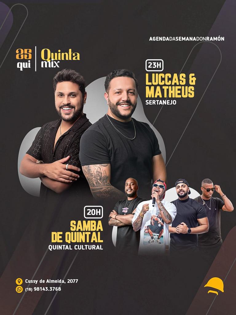 23h – A dupla Luccas & Matheus chega trazendo todo o peso do sertanejo pra animar a noite!