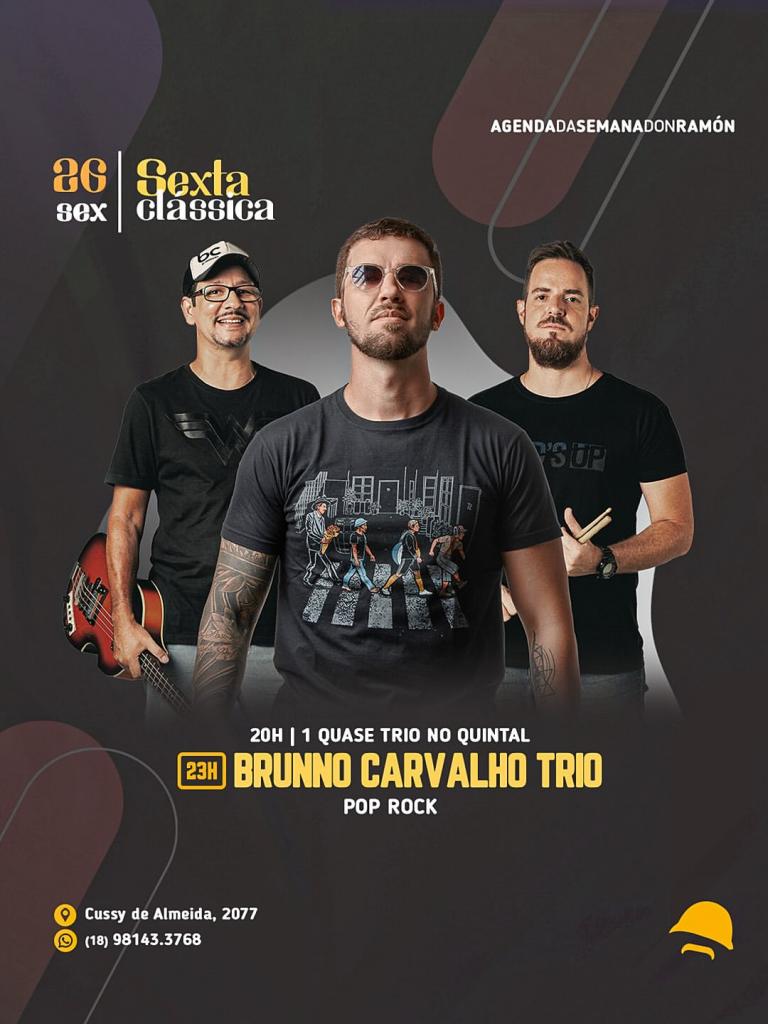 O Brunno Carvalho Trio apresenta um show vibrante de pop rock, cheio de clássicos que todo mundo curte cantar junto.