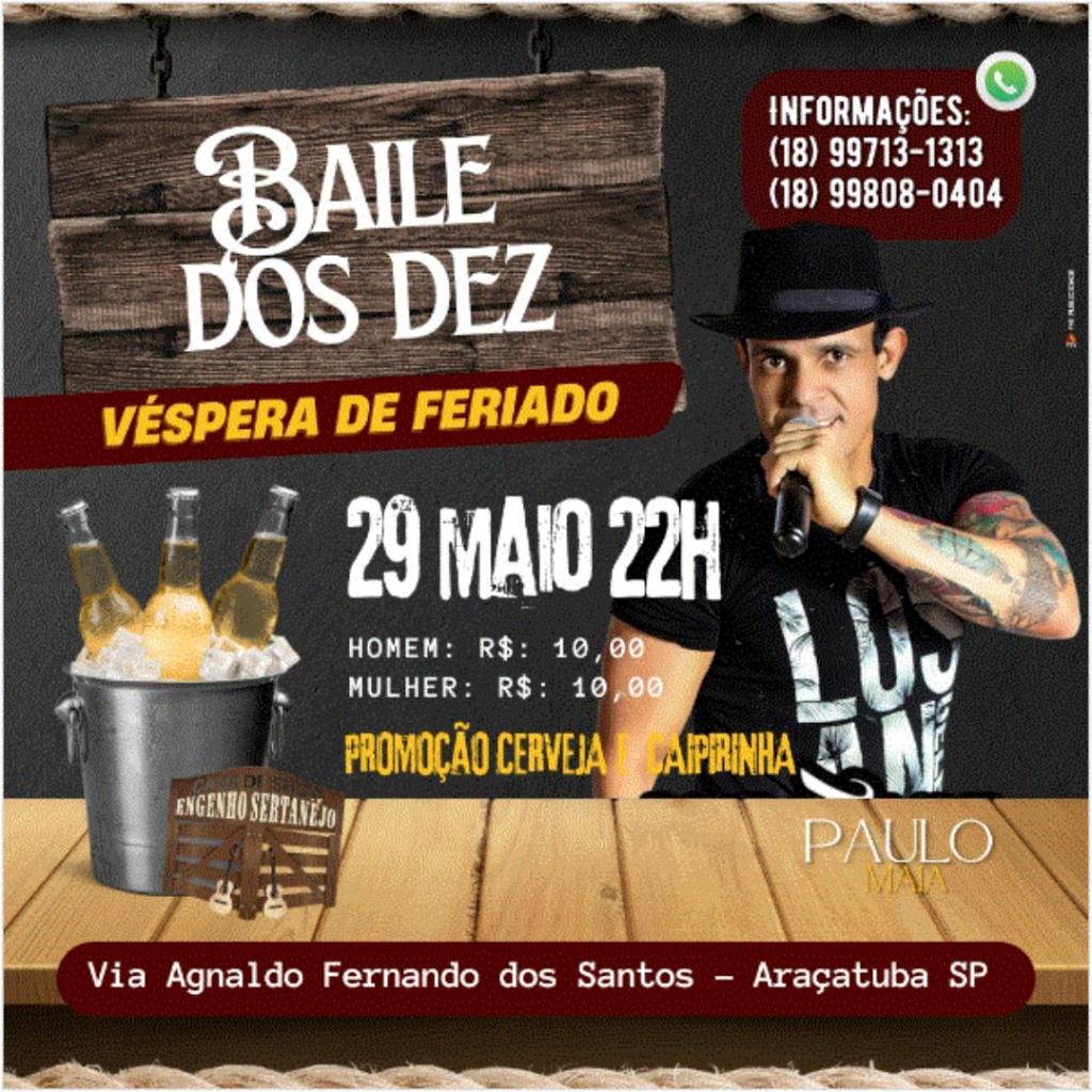 Baile dos Dez amanhã,(Quarta Feira), feriadão de Maio!