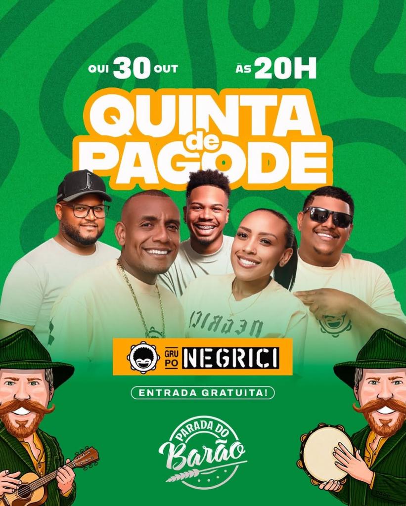 Vem curtir muito samba e alegria com o Grupo Negrici a partir das 20h!