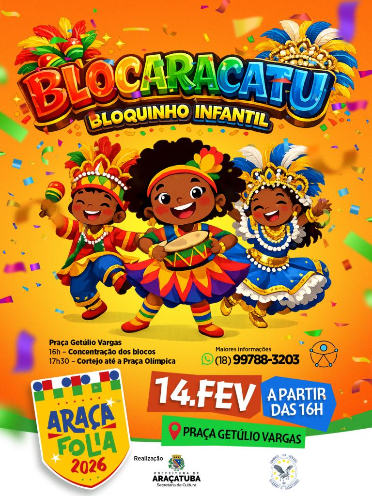 #AraçaFolia2026 #CarnavalAraçatuba #BlocoInfantil #AraçaMirim #Blocaracatu #CarnavalEmFamília #Araçatuba #FolcloreETradição