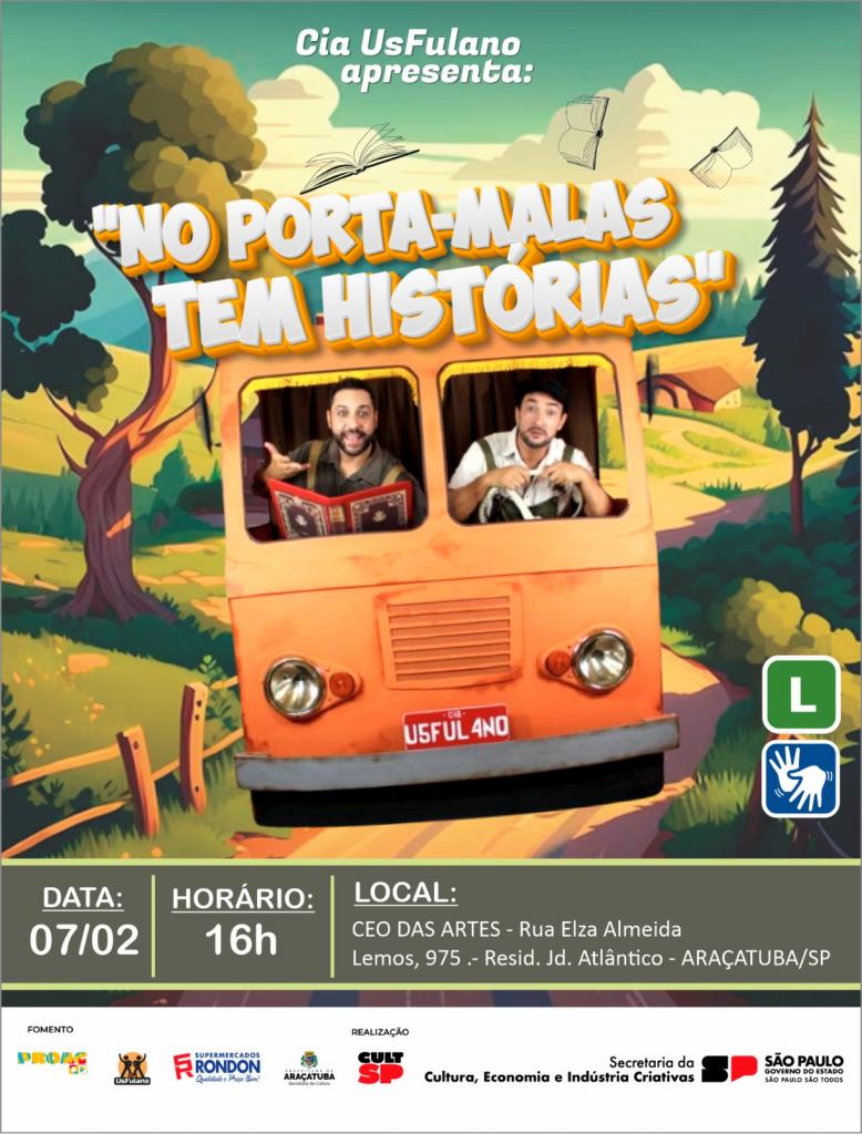O espetáculo “NO PORTA MALAS TEM HISTÓRIAS” da CIA USFULANO é livremente inspirado na literatura do autor contemporâneo Ricardo Azevedo e conta a história de dois amigos trabalhadores rurais e marceneiros que viajam em seu caminhãozinho velho levando junto todo seu material de trabalho, transformando o veículo numa verdadeira "oficina ambulante", e junto com eles muitas histórias, causos e contos. São histórias que falam da existência, como se elas surgissem para explicar o inexplicável, dando brilho e entendimento para os problemas e dificuldades enfrentados pela dupla.