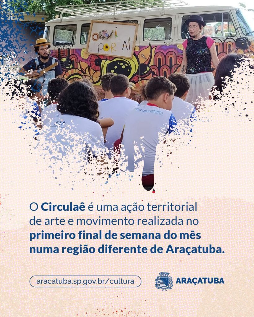“O Circulaê é um convite à convivência, à valorização da cultura local e ao encontro das famílias em torno da arte. Nosso objetivo é ocupar os espaços públicos levando atividades culturais e de cidadania aos moradores”, afirmou a secretária de Cultura, Vanessa Manarelli.
