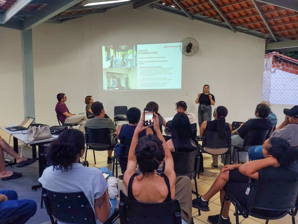 Durante a reunião, Manuella falou sobre as obras de manutenção na Casa da Cultura Professor Adelino Brandão e de restauro, em andamento na Casa do Engenheiro Chefe, ambas tombadas como Patrimônio Histórico do Município pela Lei Municipal 3.839/1992.