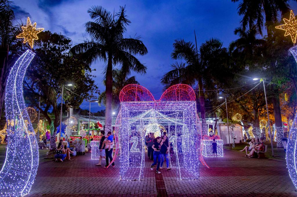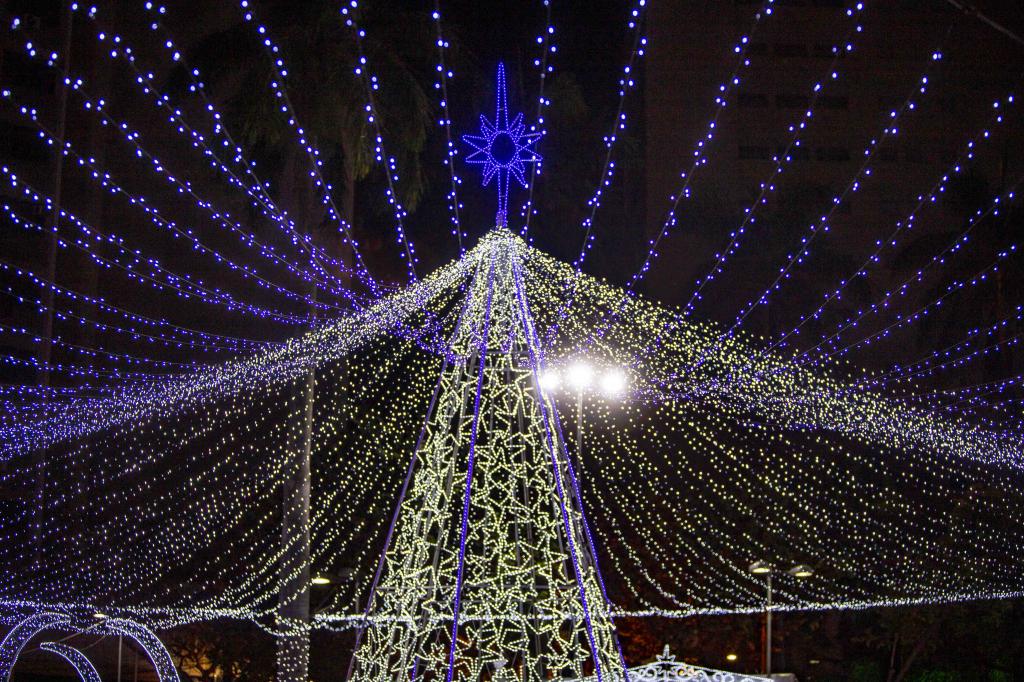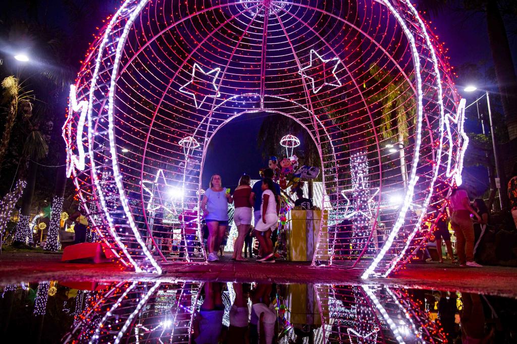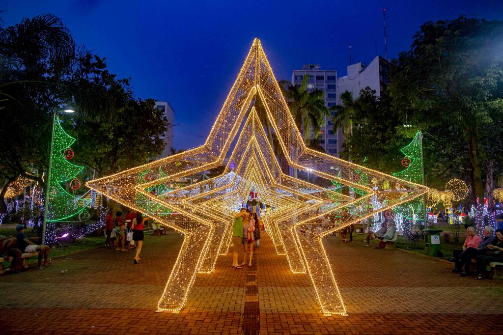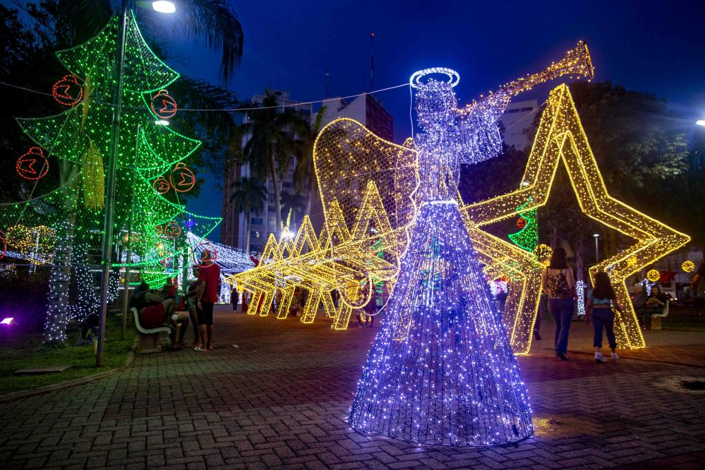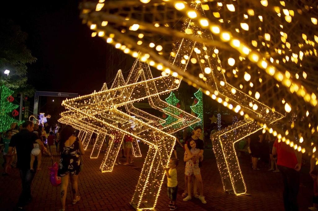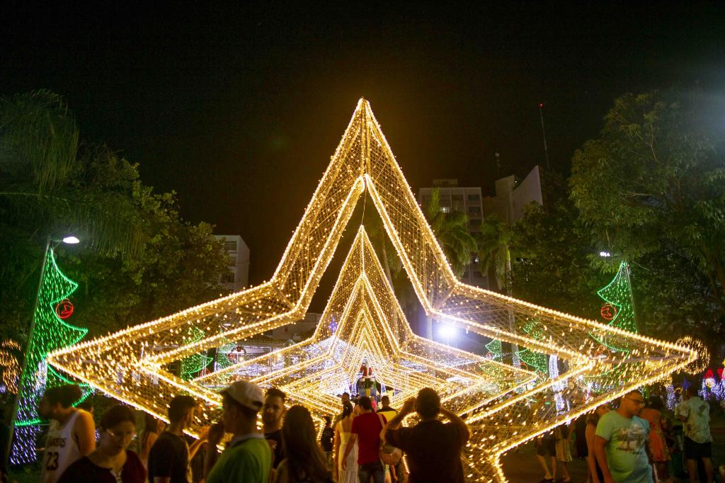 § 4.° Os enfeites luminosos deverão ficar ligados das 18h às 22h, no mínimo.