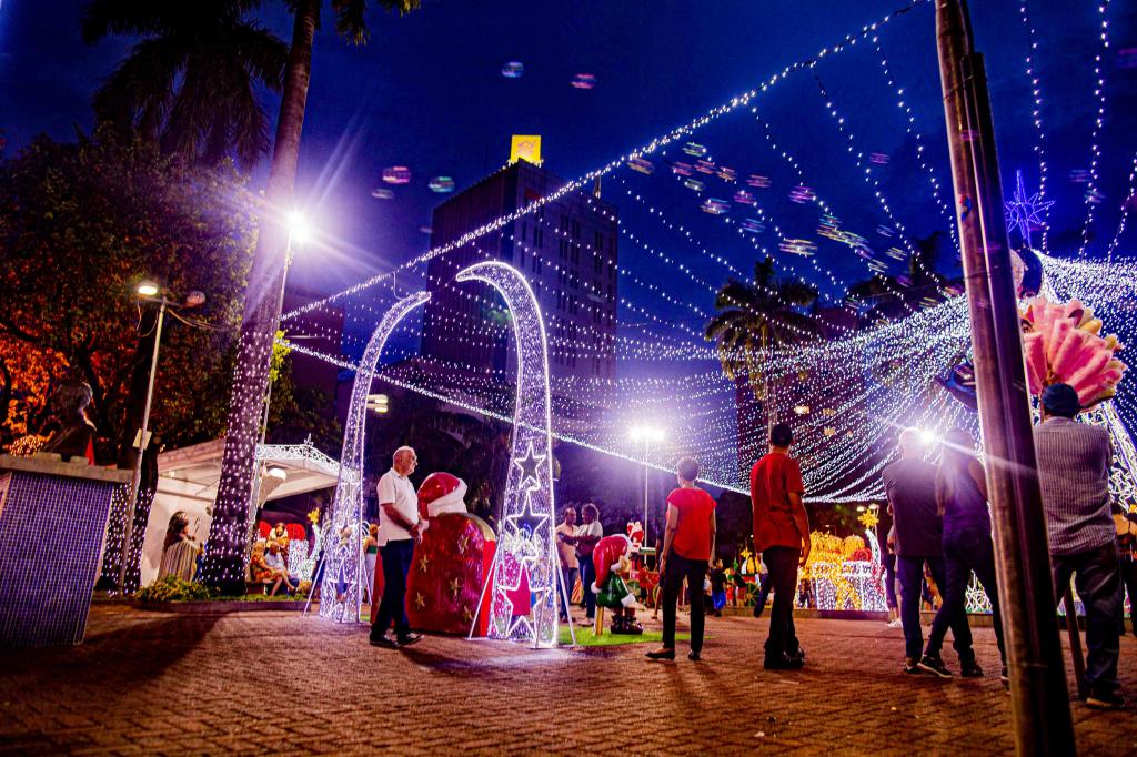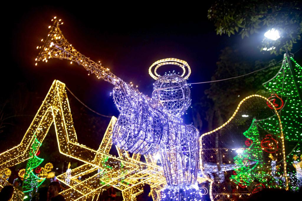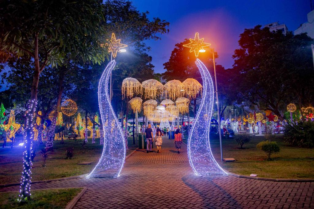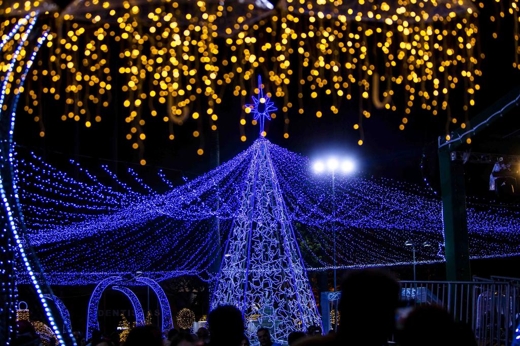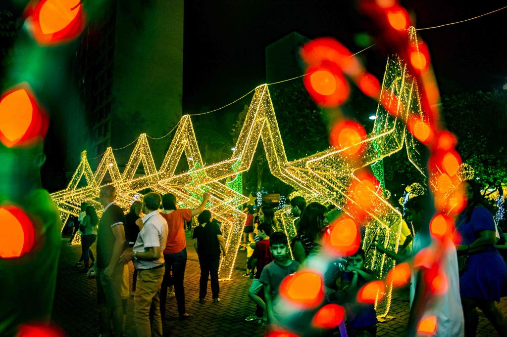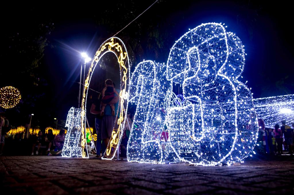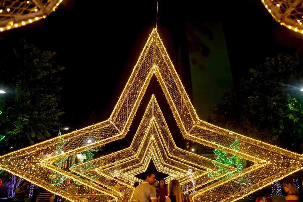 § 4.° Os enfeites luminosos deverão ficar ligados das 18h às 22h, no mínimo.
