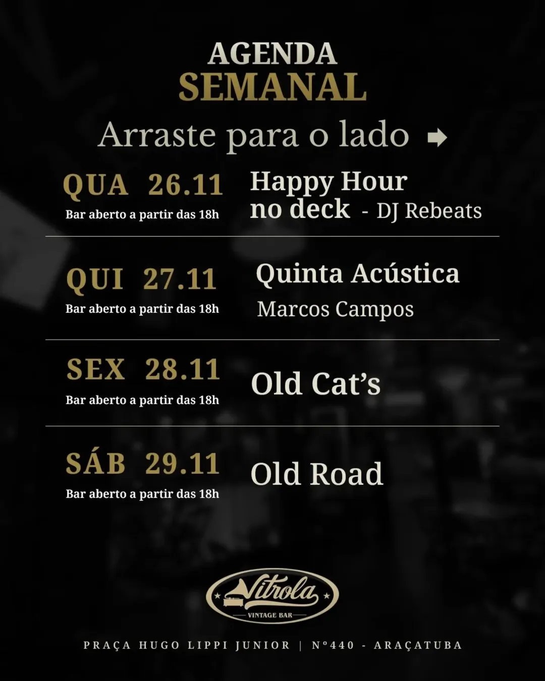 A semana de 26 a 29/11 vai ser DAQUELAS no Vitrola Vintage Bar!