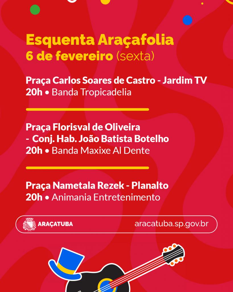 É nessa sexta que o Esquenta do Araçá Folia invade os bairros com muita música, animação e aquele clima gostoso de Carnaval. É pra chegar, curtir e cair na folia pertinho de casa!