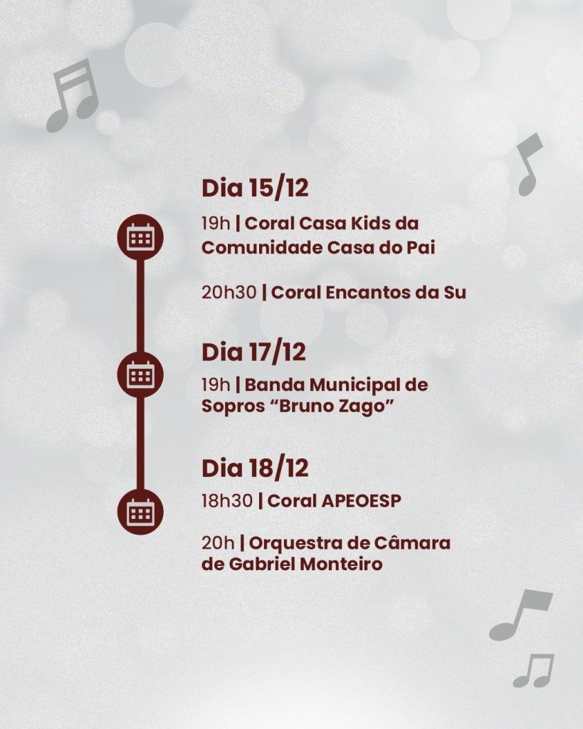 Nossos corais vão emocionar com apresentações que espalham harmonia, esperança e toda a beleza dessa época especial.
