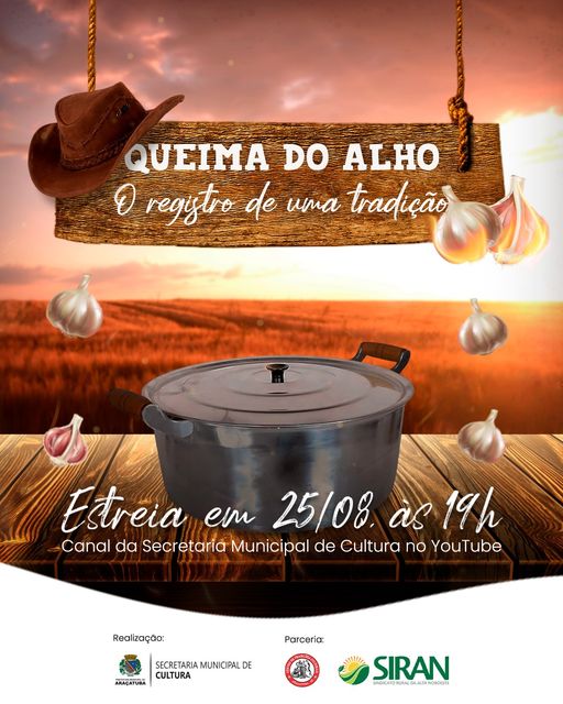 Em comemoração ao Dia da Queima do Alho, celebrado em 25 de agosto, a Prefeitura de Araçatuba, através da Secretaria Municipal de Cultura, exibirá na próxima quinta-feira (25), às 19h, a primeira parte do webdocumentário ?Queima do Alho: O registro de uma tradição?.
