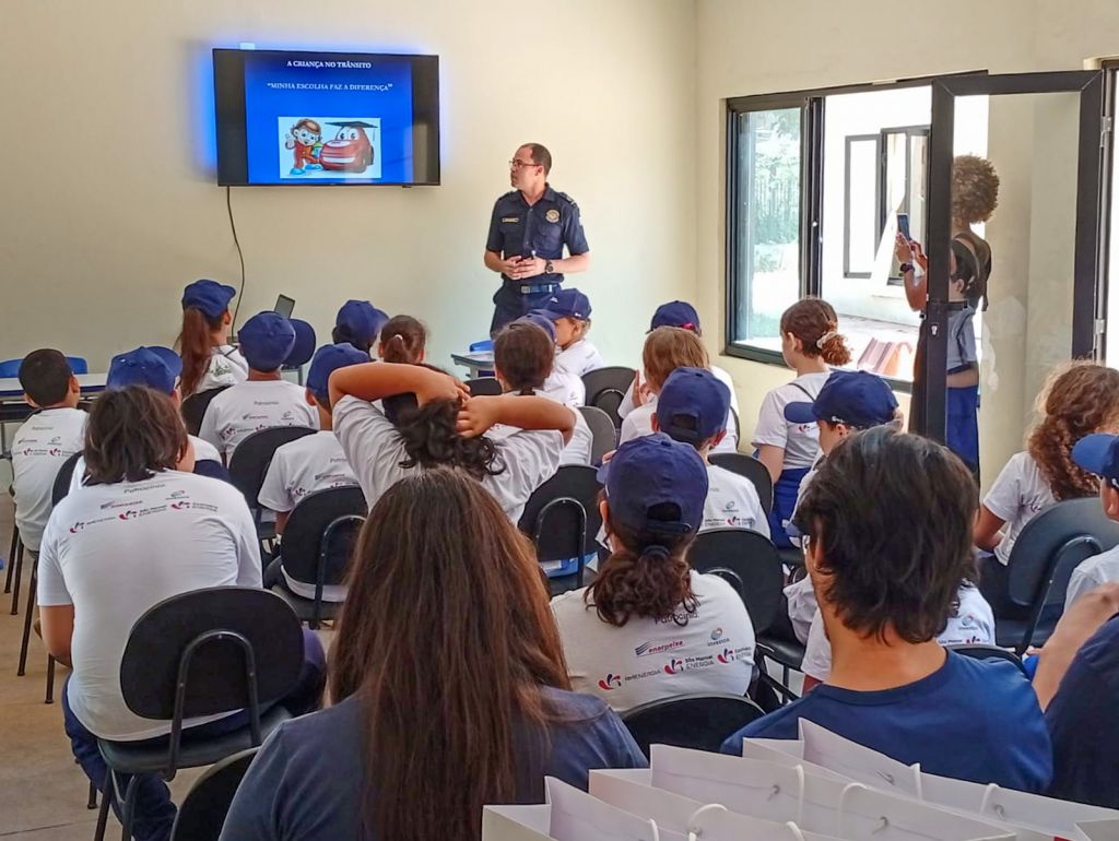 Durante a palestra, os estudantes receberam orientações sobre segurança viária, comportamento seguro com pedestres e ciclistas, além de noções básicas sobre sinalização.