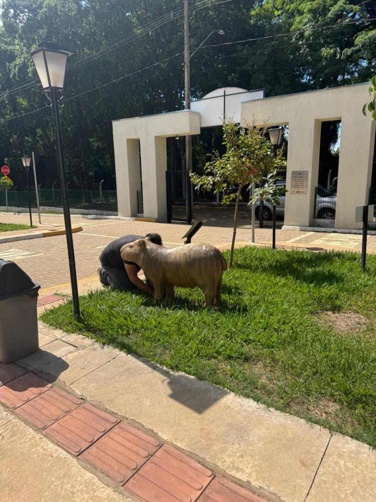 A primeira a passar pela recuperação será a da capivara, retirada nessa segunda-feira (26) pela empresa Studio 4 Artes e Restaurações Ltda. As esculturas integram o contrato firmado em 2023 com a empresa Bazan Engenharia Administração e Construções Ltda.